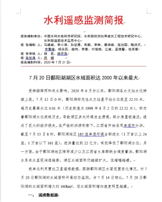 自然灾害遥感监测部的开展年度重大水旱灾害事件的遥感监测,并向国家遥感中心第一时间报送监测简报。